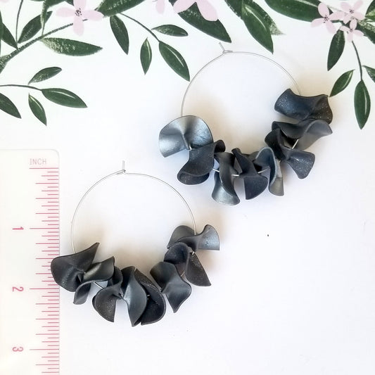 2 toned Gray on Silver Large Flamenco Ruffle Hoops